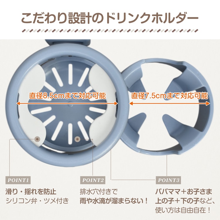 【ドリンクホルダーサイズ(約)】:メイン直径8.5×高さ11.5cm/サブ直径9.5cm×高さ5.8cm