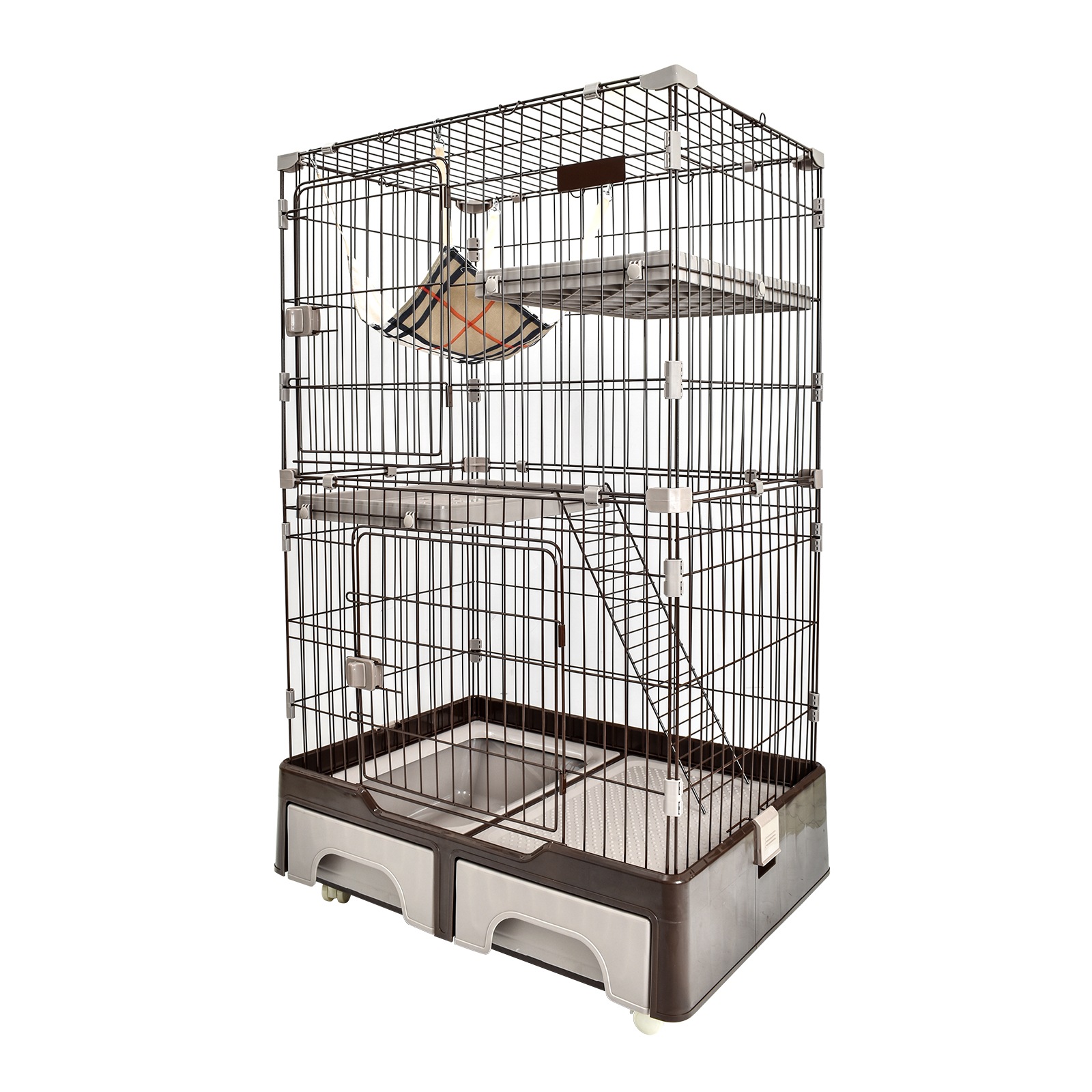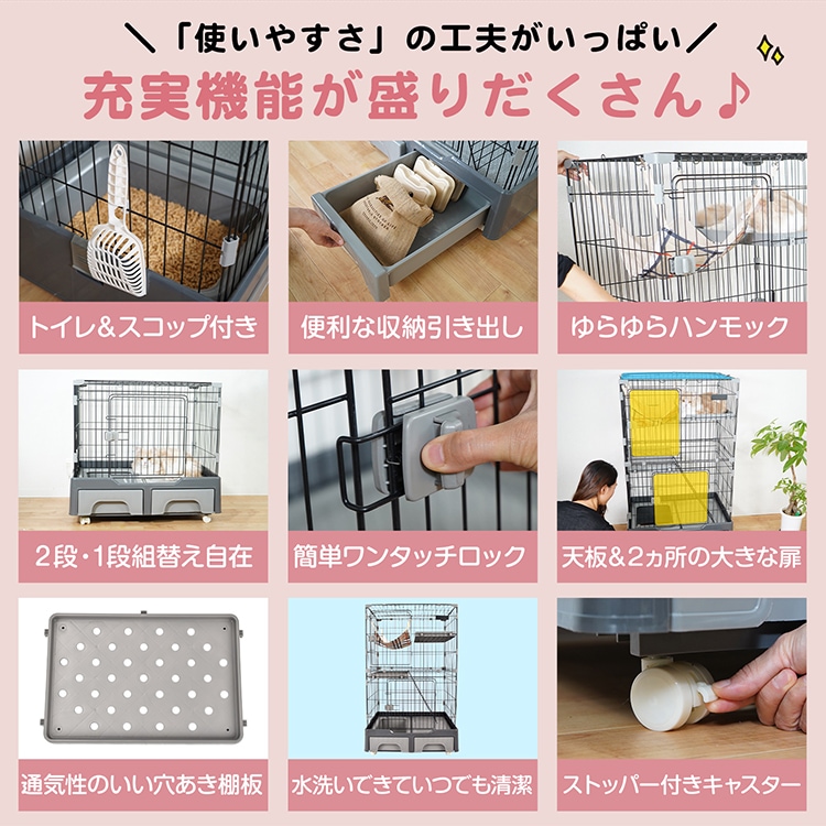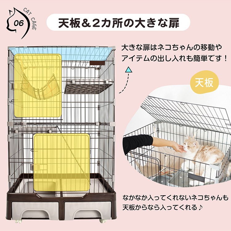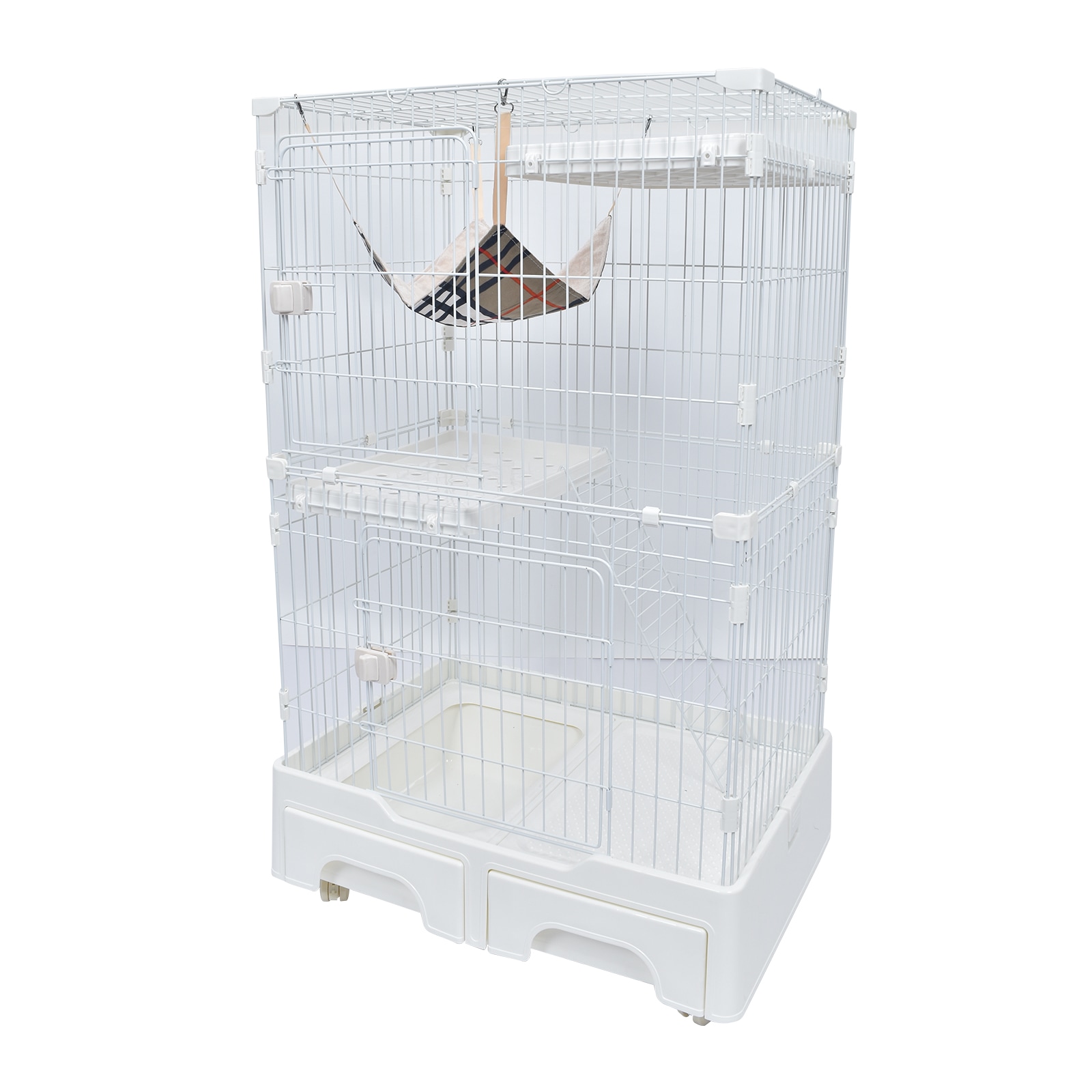 猫ケージ キャットケージ 2段 84×58.5×133cm 引き出し収納 ロック付き トイレ付き キャスター付き 組立簡単 留守番 保護 脱走防止 ペット用品 pt072