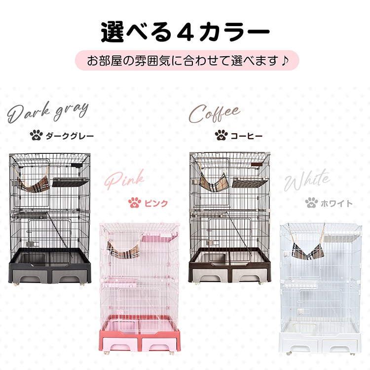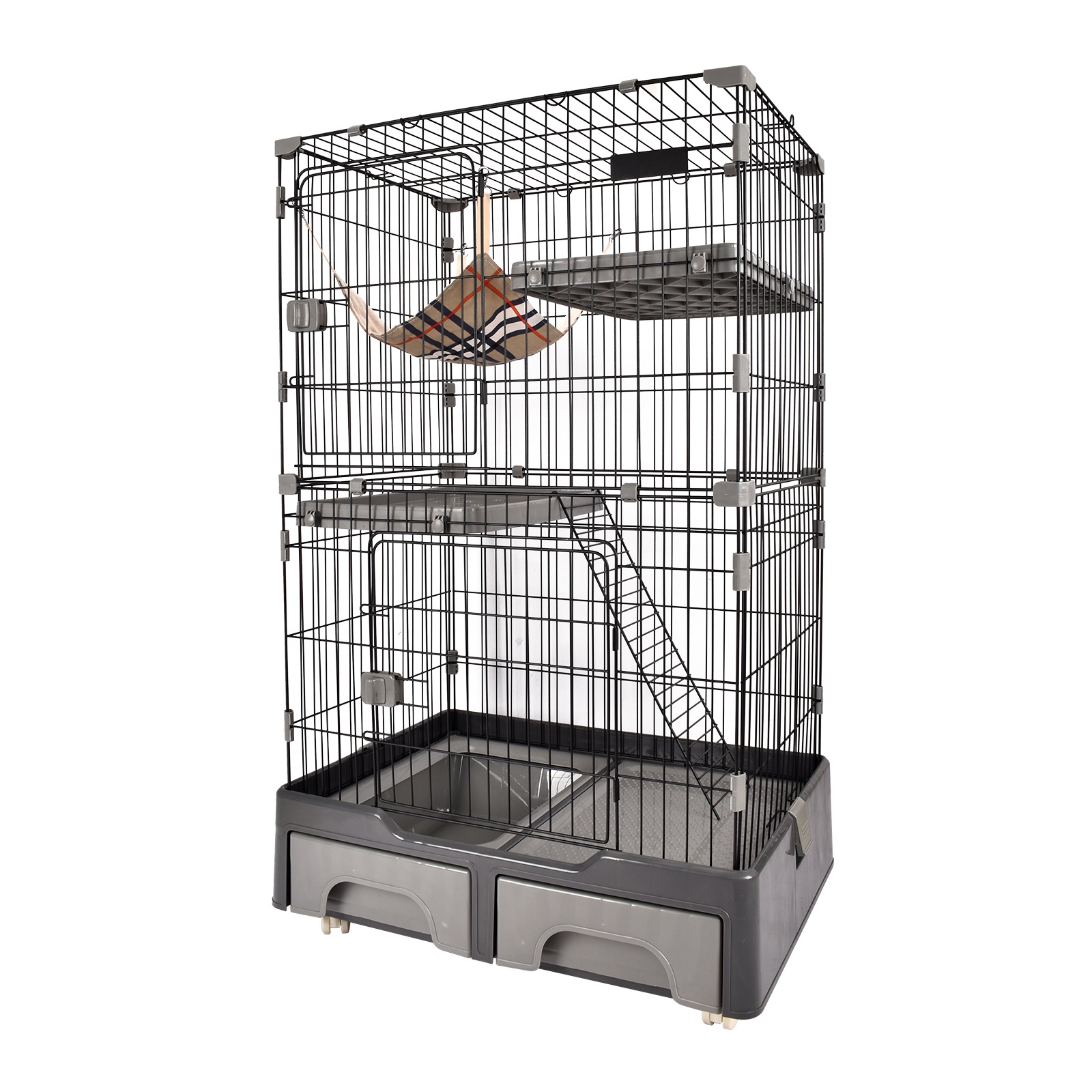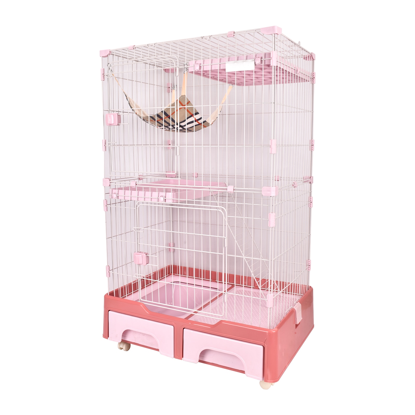 猫ケージ キャットケージ 2段 84×58.5×133cm 引き出し収納 ロック付き トイレ付き キャスター付き 組立簡単 留守番 保護 脱走防止 ペット用品 pt072