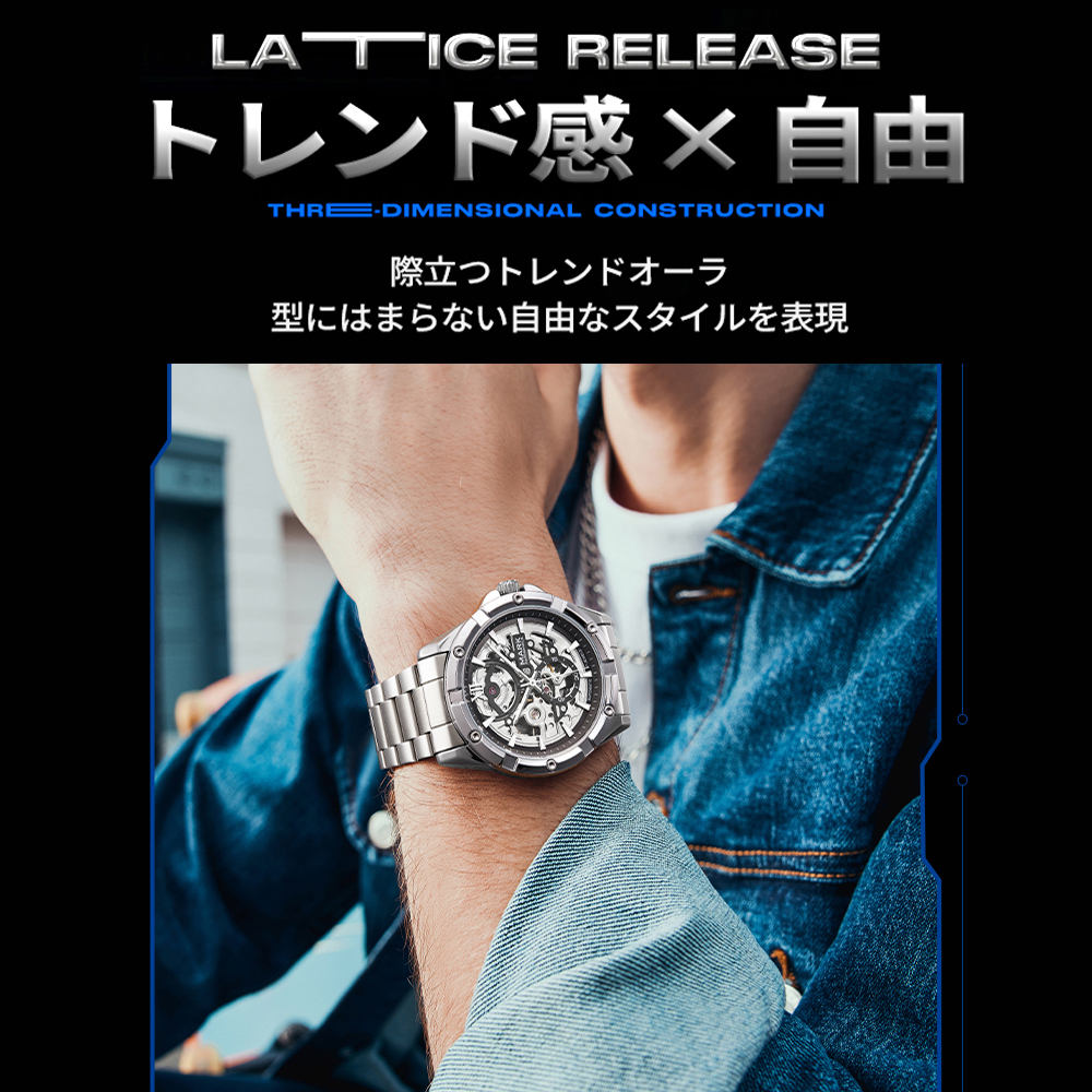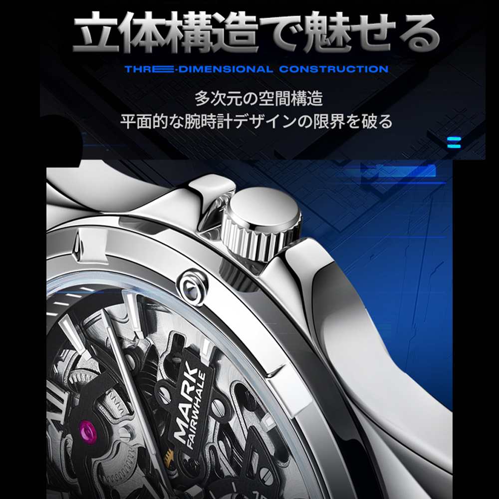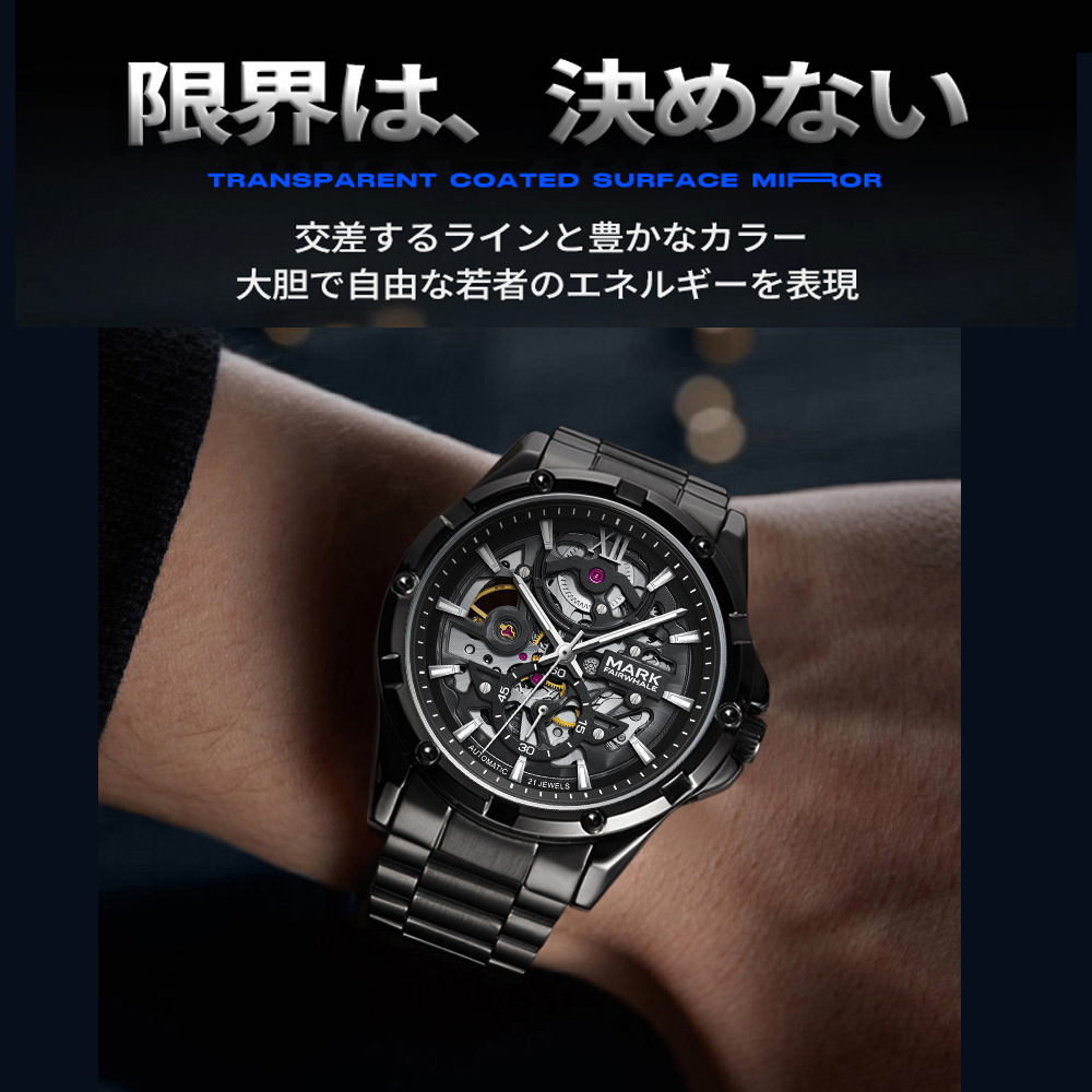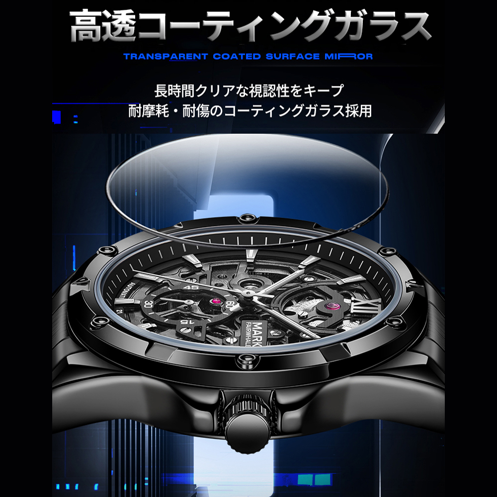 腕時計 ウォッチ 機械式 精密ギア 両面設計 メタル調 テクノロジー感 未来感あふれる 夜光加工 耐磨耗性 傷つきにくい メンズ ビジネス カジュアル オフィス・日常兼用 6960