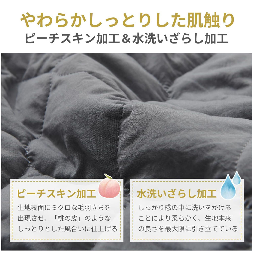 使うほどに柔らかさが増す「洗いざらし加工」を採用。最初から肌触りがよく、自然な風合いを楽しめます。毎日使う寝具として、やさしい触感が長く続きます。