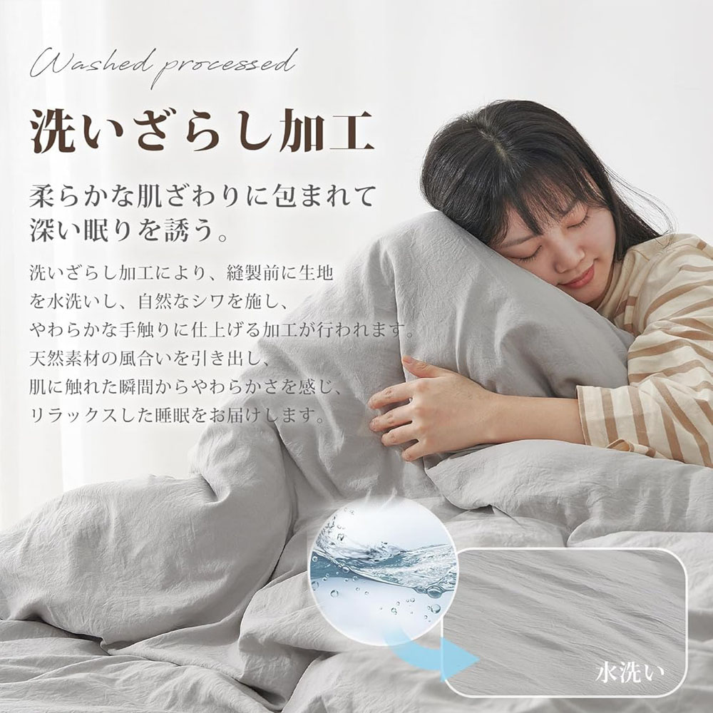 Kumori 寝具カバーセットSD 布団カバーセット 洗いざらし シワ加工 水洗い やわらか 掛け布団カバー ボックスシーツ 枕カバー吸水速乾OK 肌に優しい 洗える 無地 シンプル オールシーズン SXDJT-BH-SD