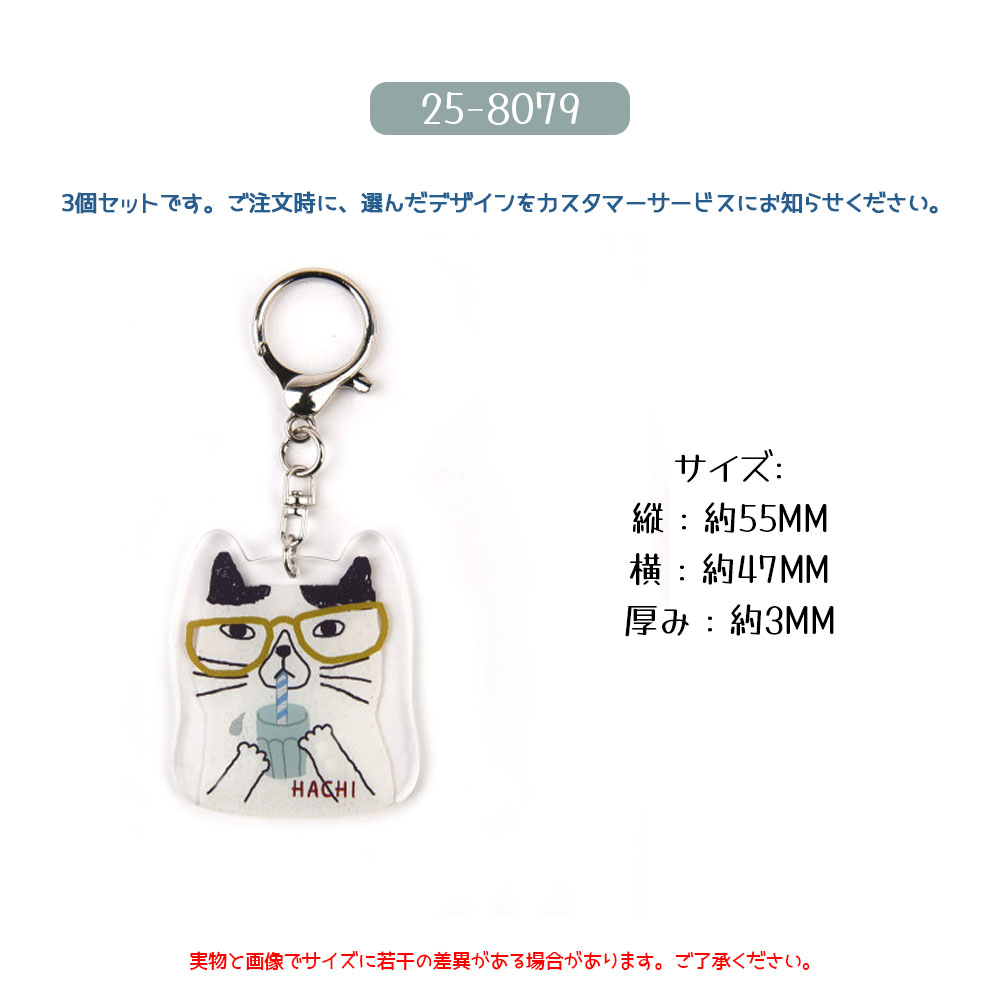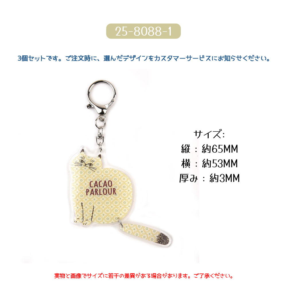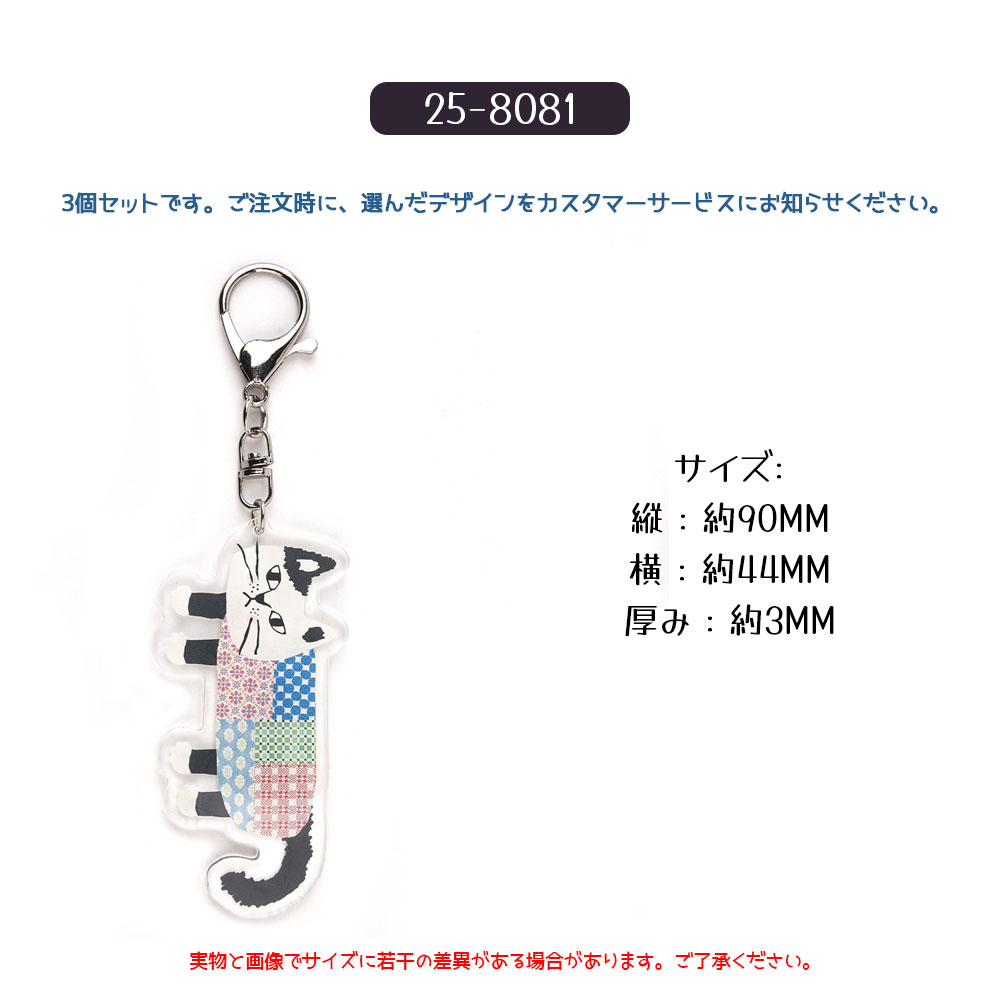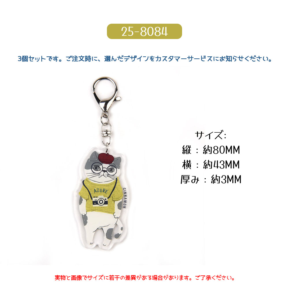 キーホルダー 3 個セット バッグチャーム キーリング ネコ柄 いぬ 金属フック 可愛い ユニーク 万能デザイン ペット柄 バッグ飾り プレゼント ギフト 25-8076