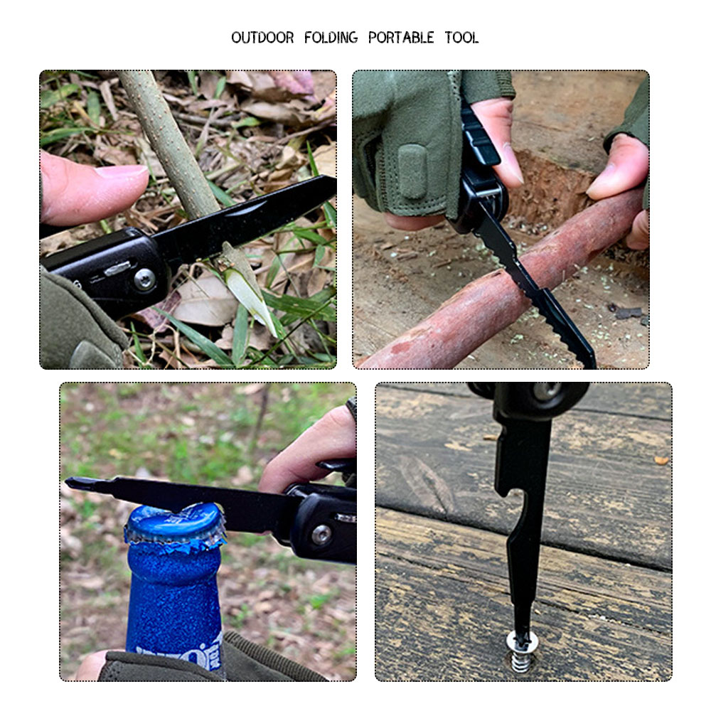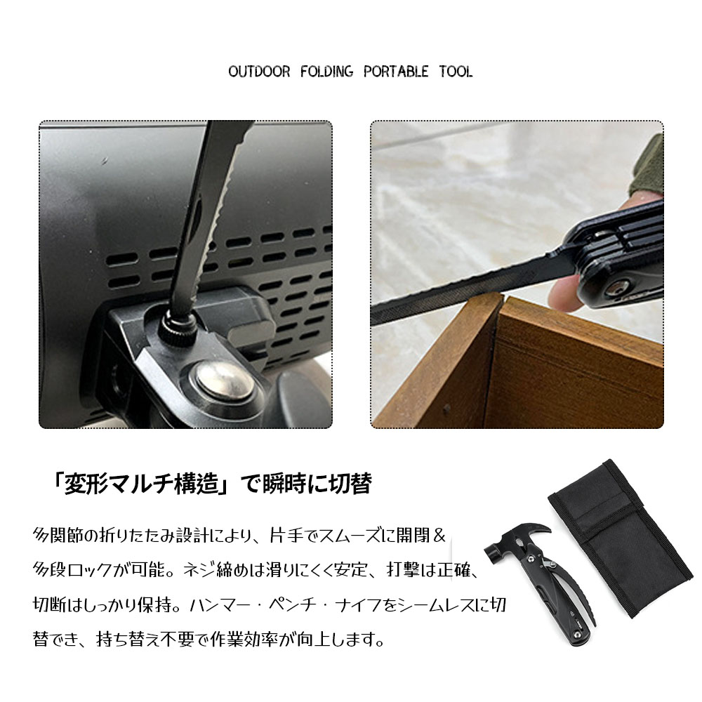 多機能ハンマ一 アウトドア用 12in1 マルチツール ペンチ 釘抜き 爪やすり ナイフ セーフティロック付き 安定 高硬度 キャンプ アウトドア 設営用具 登山 野外 家庭修理YJC-073